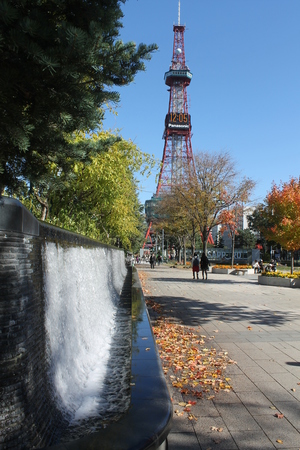 Sapporo itself is a giant city and was at one point (a long time ago) the capital of the country. Although we were too early for the Snow Festival, the weather was delightful, a crisp 16-ish degrees and sunlight raining down on everything. We walked the very american style block streets until we came to the main park, Odori Park, which runs east to west and at it's center contains Sapporo tower which we couldn't resist having a look around.